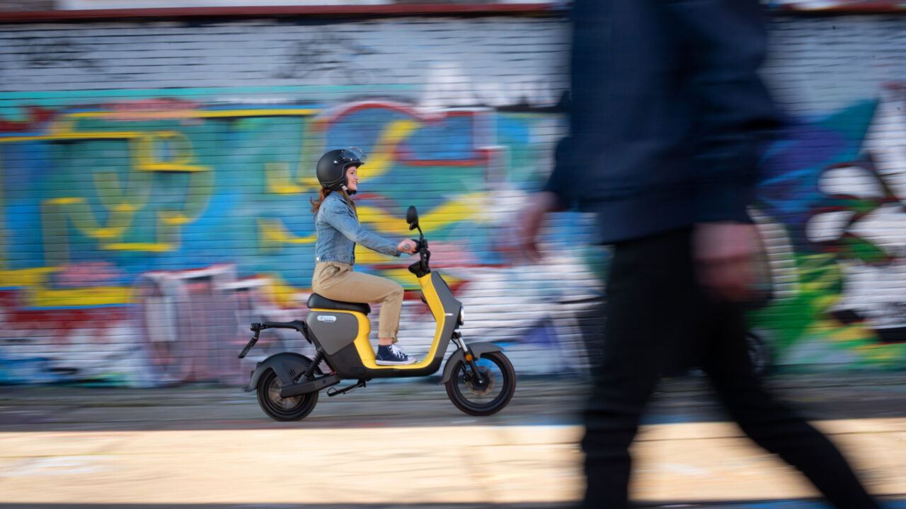 Sobald die 4 grünen LED-Lichter leuchten oder Sie auf der mobilen App sehen, dass es vollständig geladen ist, ist Ihr e-Mofa bereit und Sie können Ihre Fahrt mit einer Reichweite von bis zu 105 km genießen.